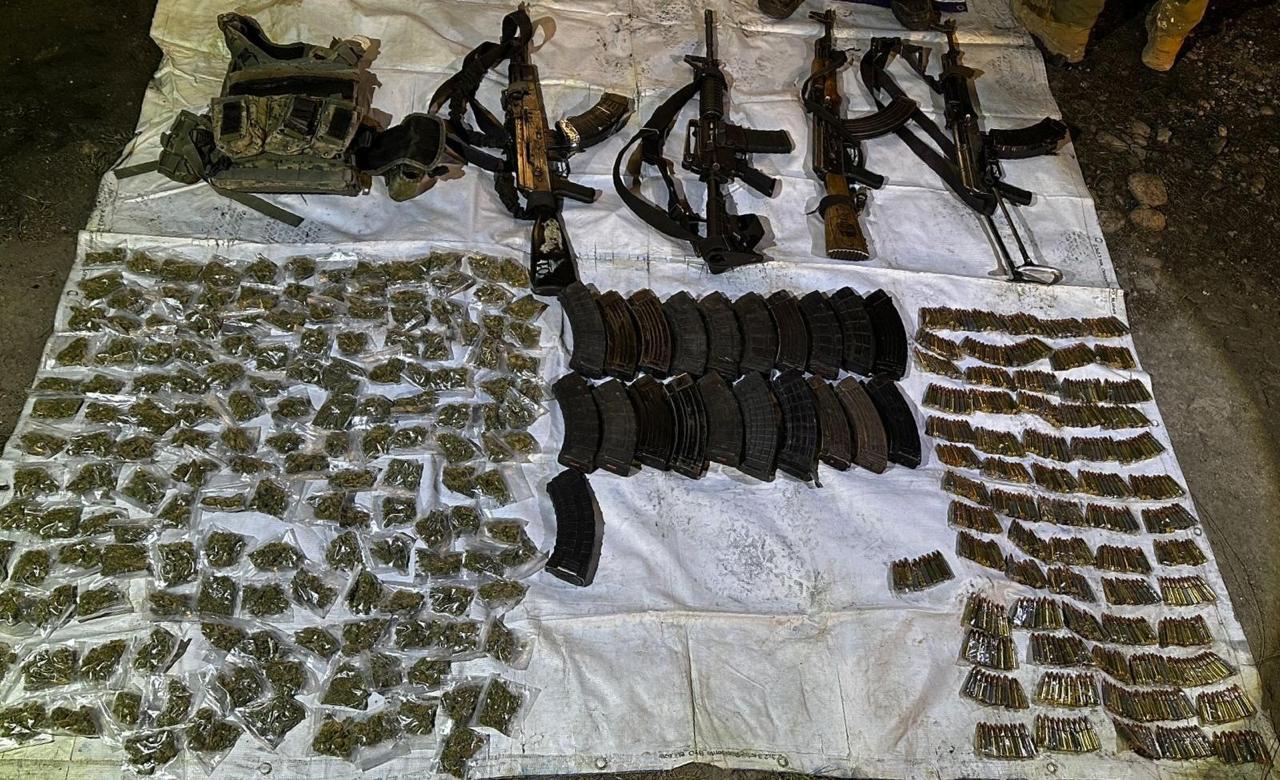 En el vehículo asegurado se localizaron armas de alto calibre, artefactos explosivos, municiones y paquetes de droga, lo que evidencia la capacidad operativa de los involucrados.